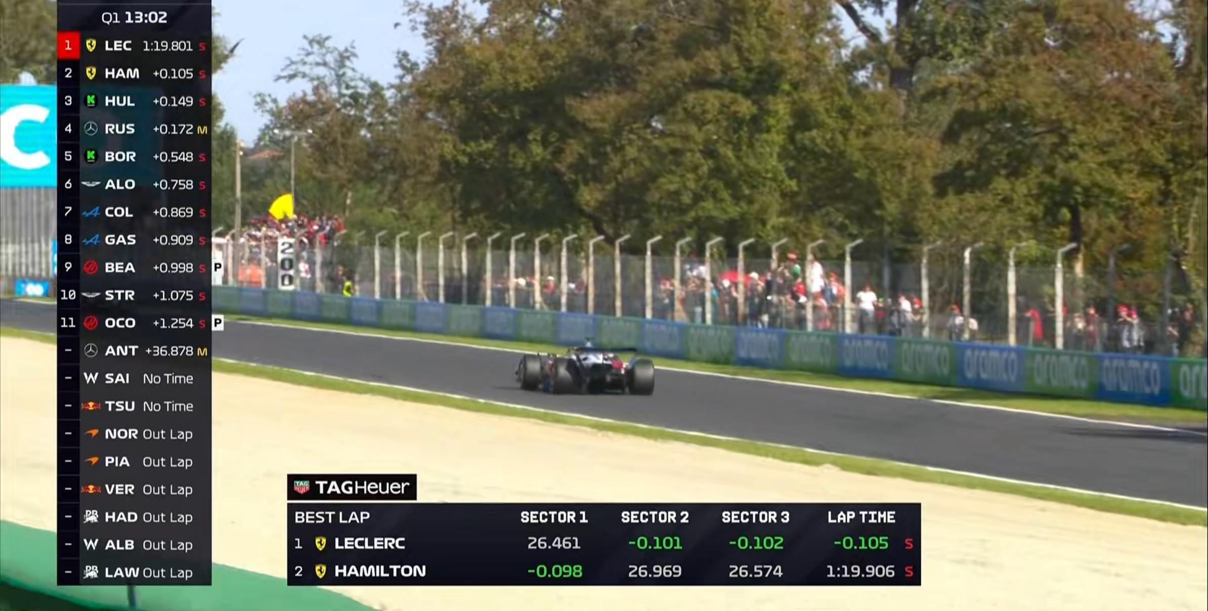 安东内利新的一圈上升至第2,两台法拉利也确定晋级Q3!