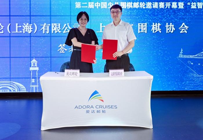 仪式上,爱达邮轮(上海)有限公司与上海市围棋协会签订合作意向书,双方联手,以棋类文化为核心,以国产邮轮为载体,利用自身的渠道和资源优势,在每年寒暑假举办主题航次活动,共创“益智运动”邮轮体验新场景,打造可持续、可复制的文体旅融合示范案例,实现共同发展、合作共赢。